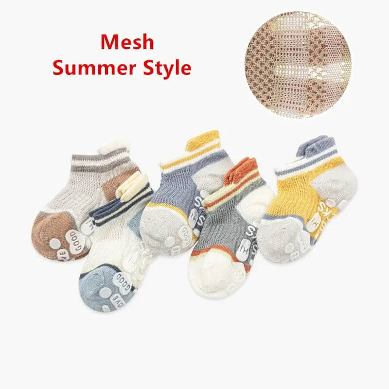 The breathable mesh fabric ensures comfort while the anti-slip rubber soles provide safety on any surface, making them ideal for active kids. Whether your child is just starting to crawl or already running around, these socks are a must-have in their wardrobe. Give your kids the best with our durable, cute, and functional floor socks.