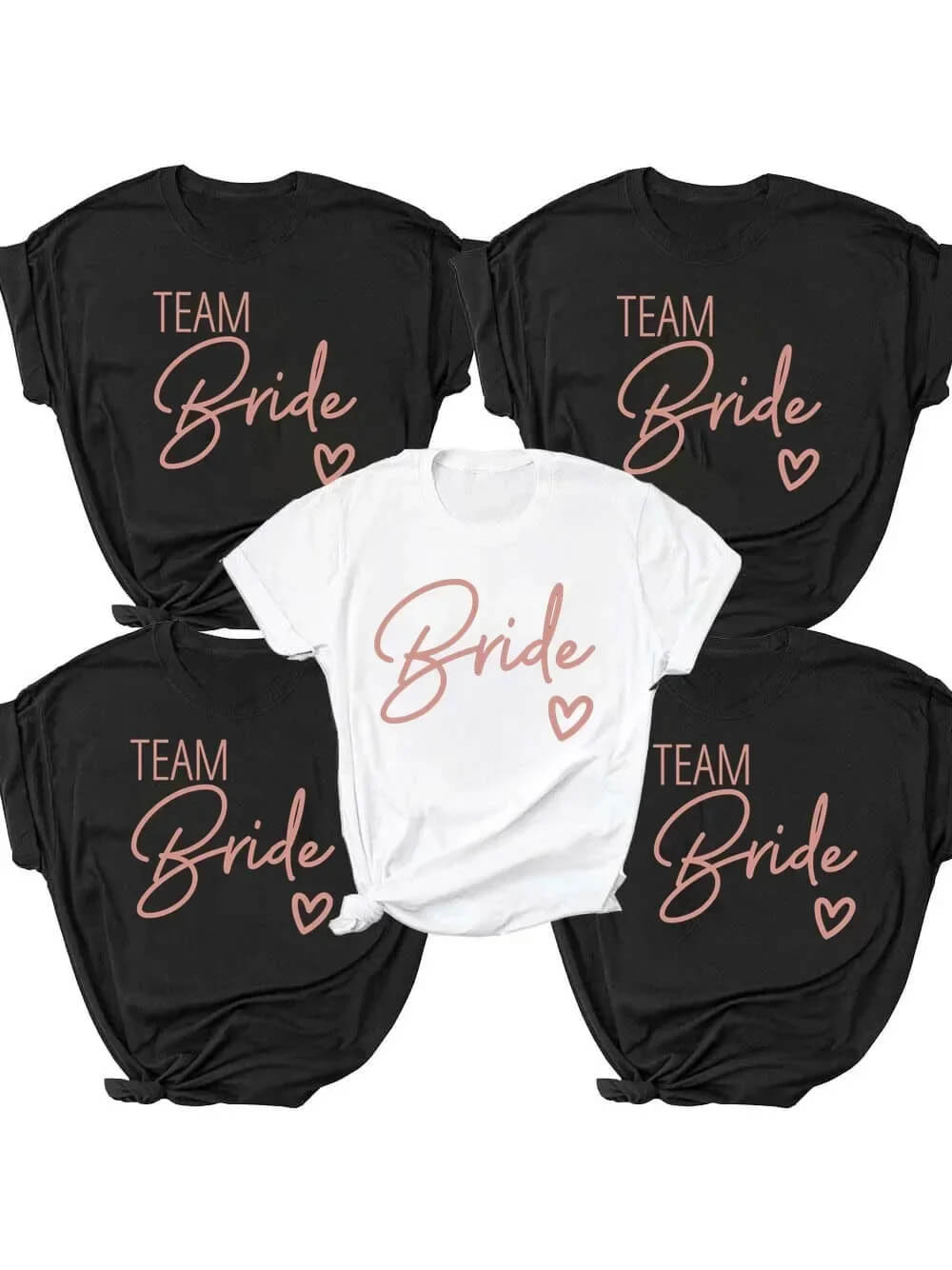 Available in classic black and crisp white, these tops feature bold, stylish prints that proclaim your allegiance to the bride. The versatile design makes them a perfect match for any bachelorette theme, whether you're planning a glamorous night out or a casual weekend getaway. These T-shirts are also great for bridal showers, engagement parties, or any occasion where you want to show off your team bride pride.