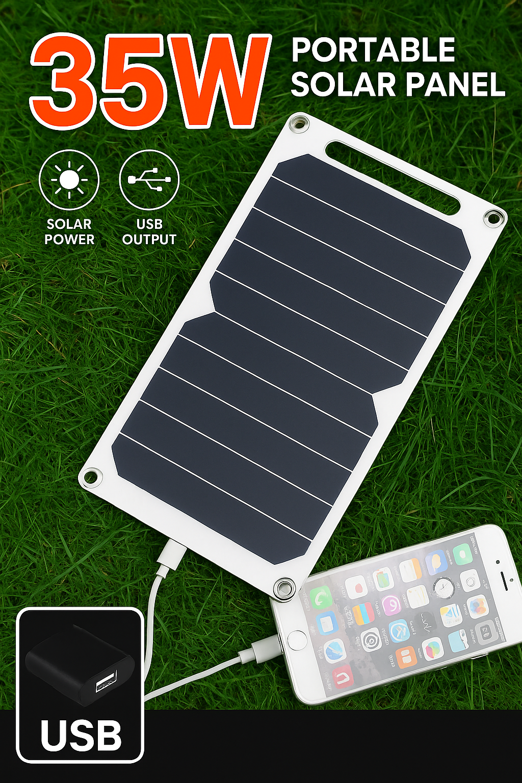 Stay powered up wherever you go with this high-efficiency 35W Portable Solar Panel Charger. Designed with premium Sunpower cells, it delivers safe and stable charging for your phone, power bank, camera, and other USB devices — no outlets required.