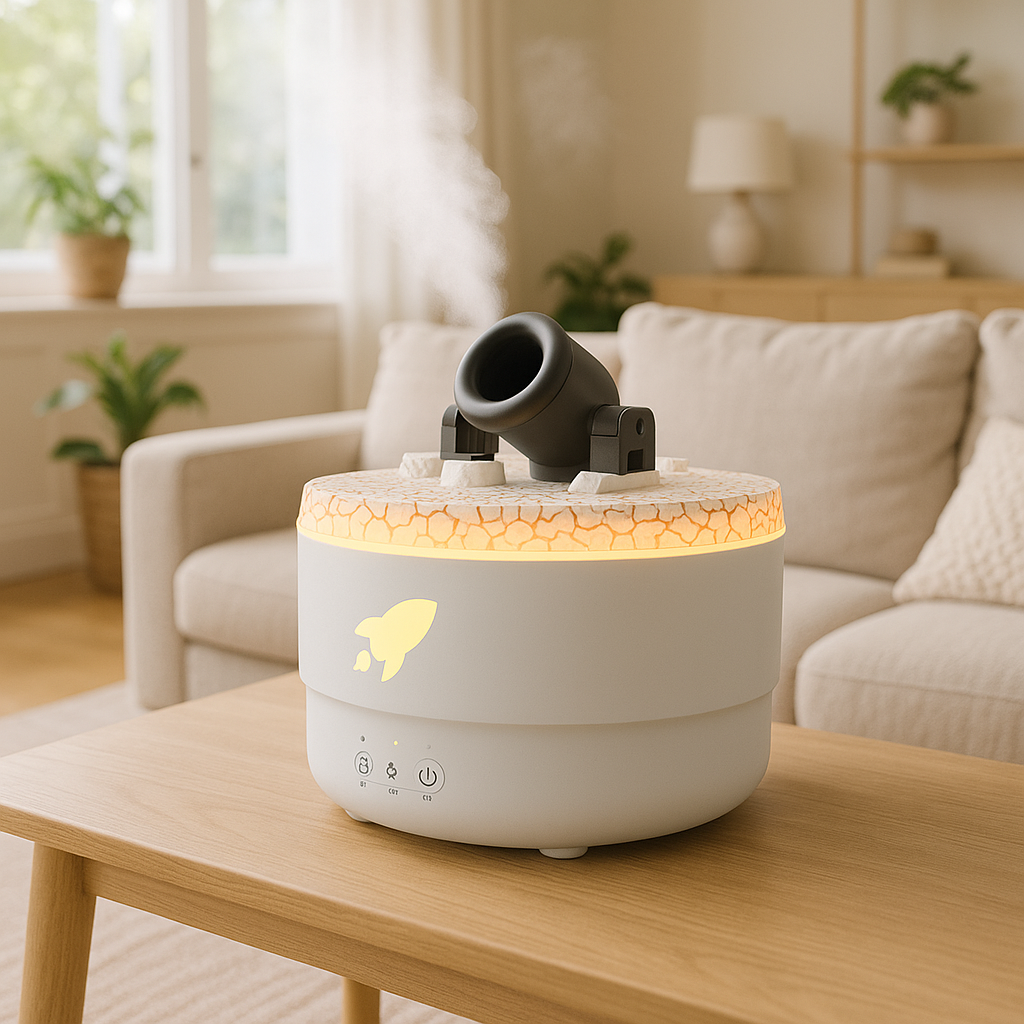 The Cannon Jellyfish Spray Diffuser by Newstyle combines functional air humidification with visual elegance. Featuring a unique mist pattern reminiscent of floating jellyfish, this tabletop diffuser enhances small spaces with gentle ultrasonic mist, subtle lighting, and quiet operation.