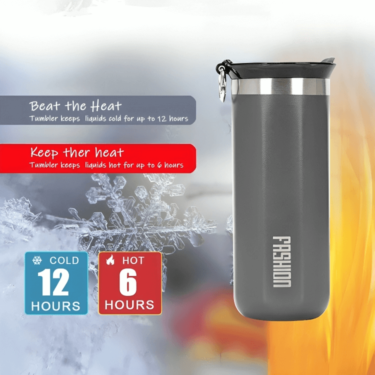 Eco-Friendly and Portable: Committed to the environment, our thermal mug is reusable and crafted to reduce waste. Its portable design makes it easy to carry, whether you're scaling a mountain or setting up camp.